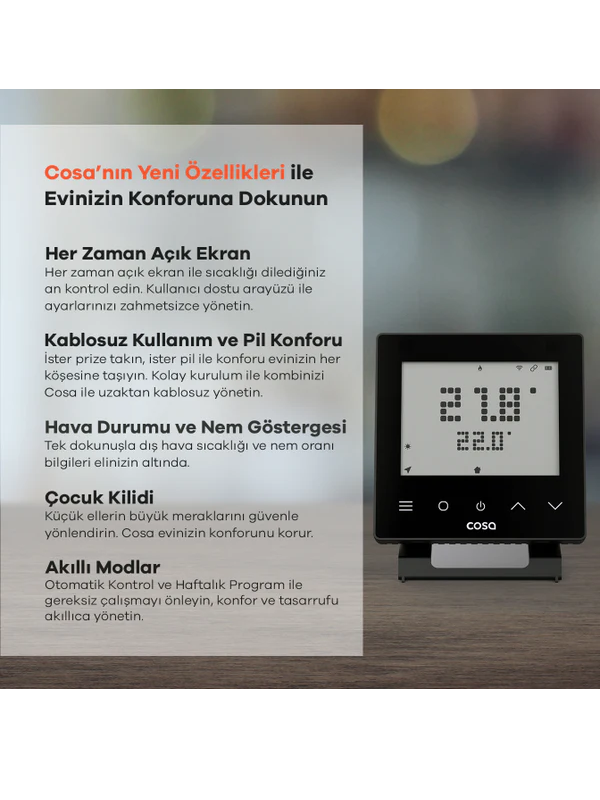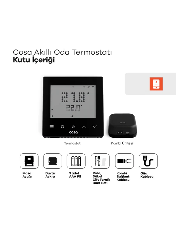 Cosa V5 Akıllı Kombi Kontrolü - Siyah Termostat ile kombi kontolünde konfor sağlar.